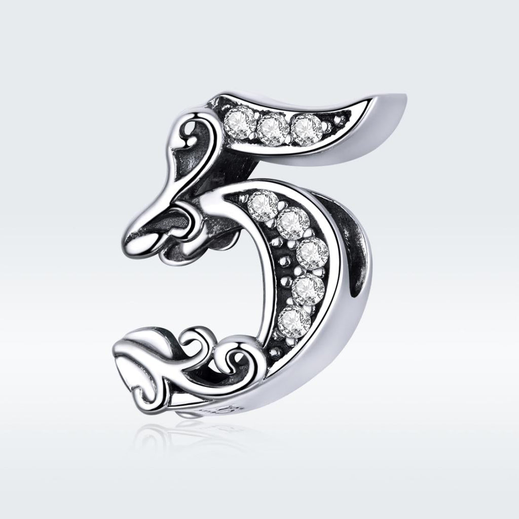 A€¢ 1 X 925 Sterling Silver Relief Number Series 0 9 Beads For Diy Bracelets And Necklaces Style - 5<