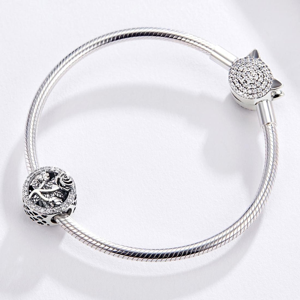925 Sterling Silver Rose Beaded Bracelet Charm Charms & Pendants