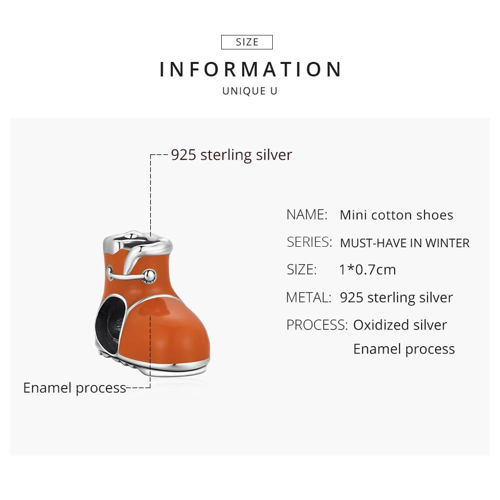 • 1 X 925 Sterling Silver Small Cotton Boots Bead For Diy Bracelets And Necklaces