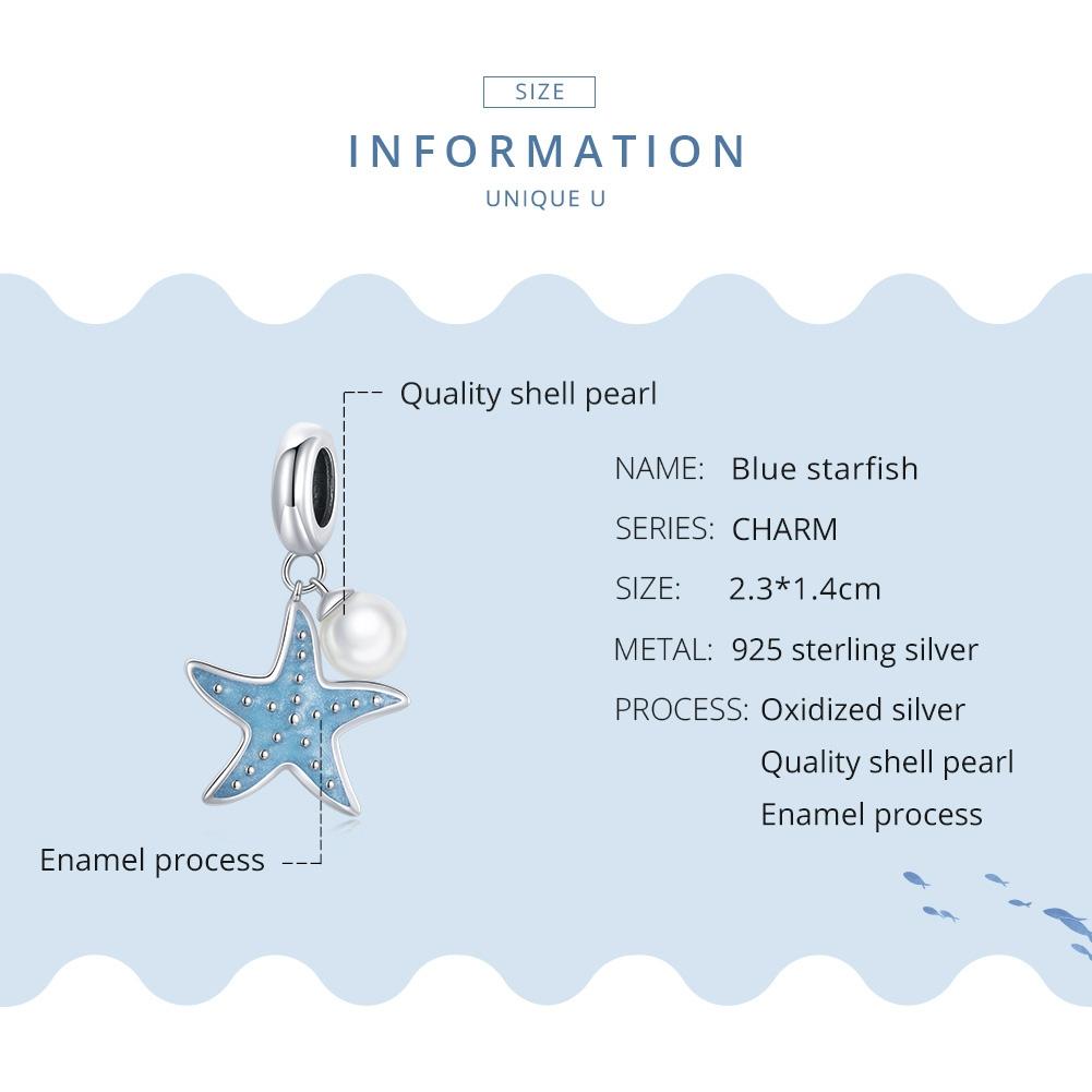 925 Sterling Silver Starfish Pendant For Diy Bracelets & Necklaces Light Blue Charms & Pendants