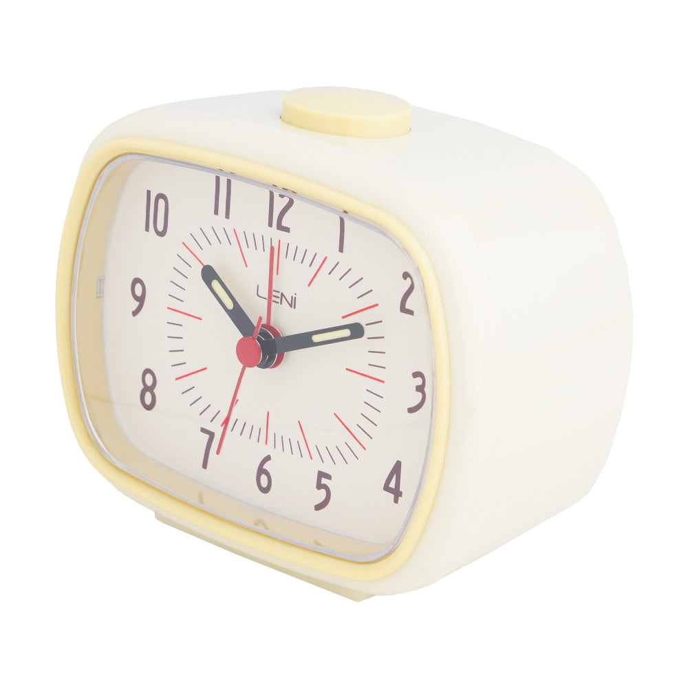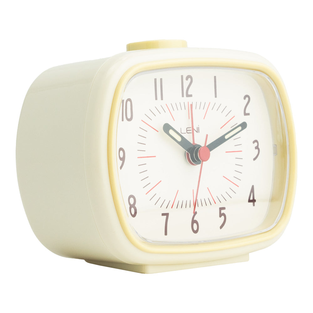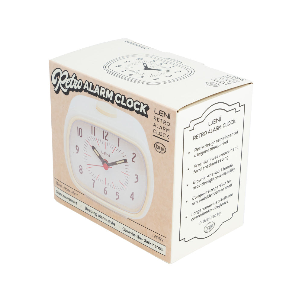 Leni Retro Alarm Clock In Ivory With Luminescent Hands And Large Button Alarm Clocks & Clock Radios