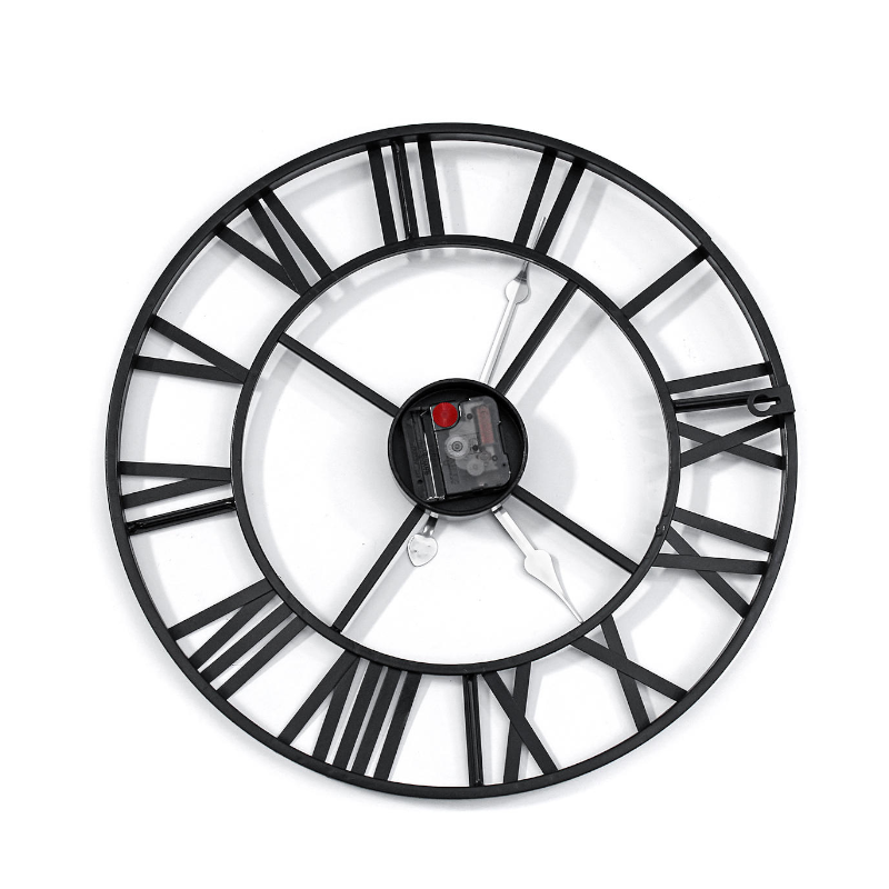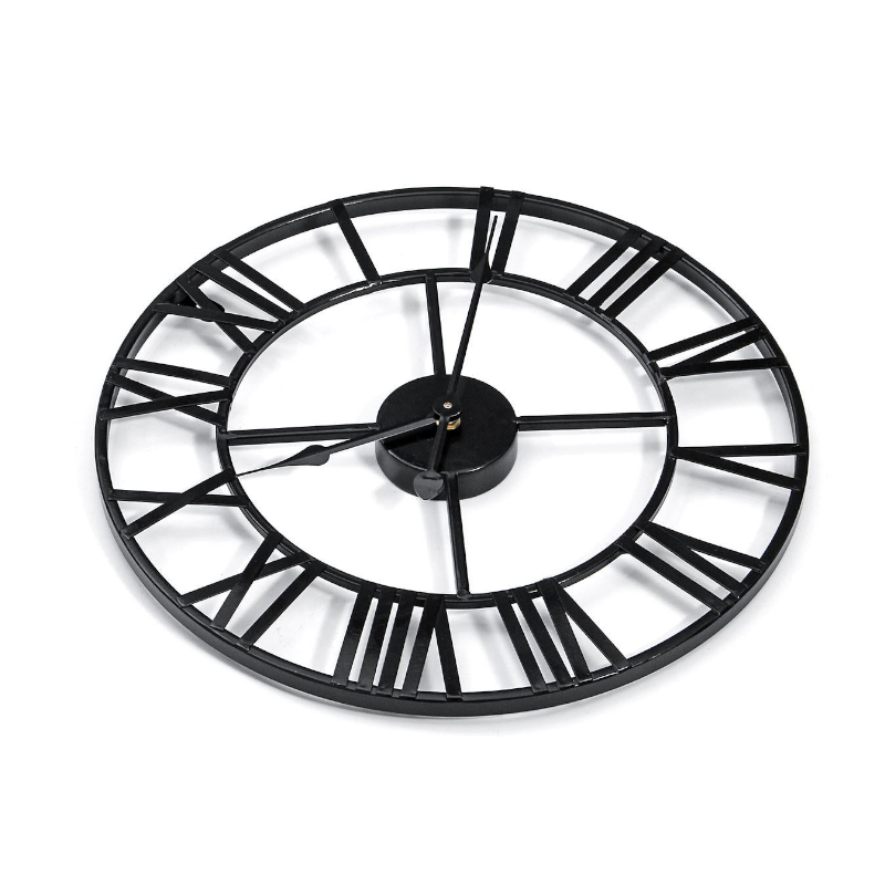 40Cm Large Metal Skeleton Roman Numeral Wall Clock Black Round Shape Wall Clocks