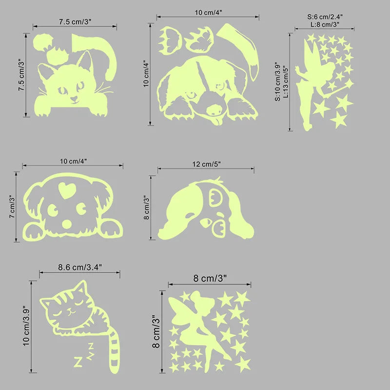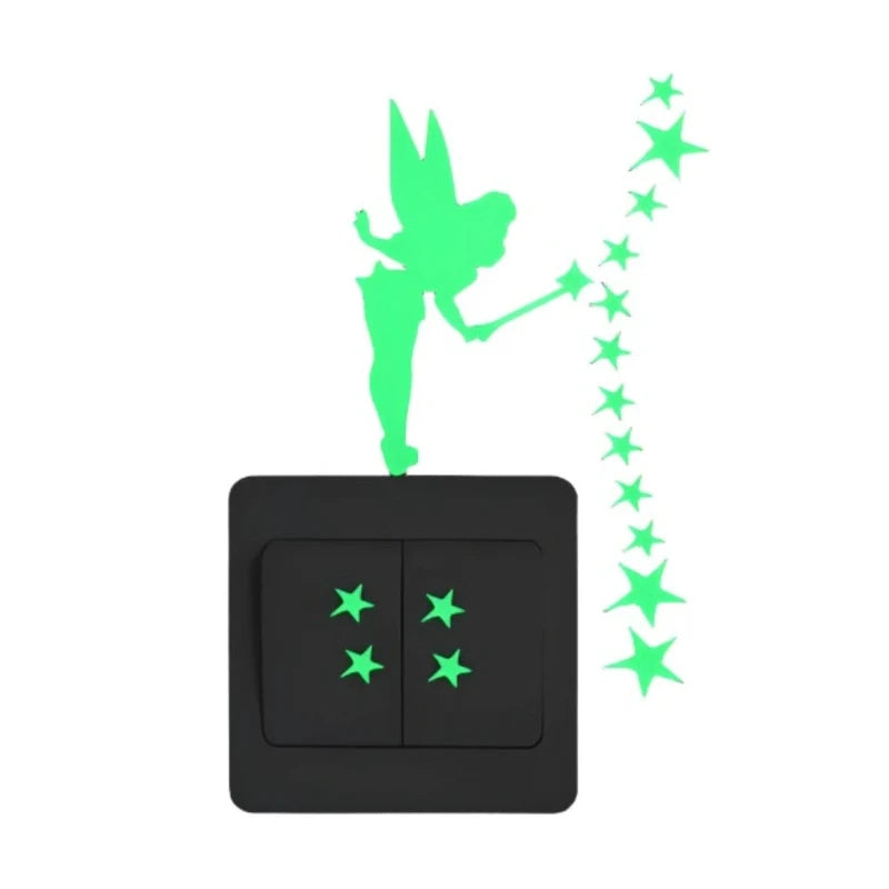 Cartoon Luminous Switch Sticker Glow In The Dark Home Decor Kids Room Decoration Decal Cat Fairy Moon Star Wall Stickers