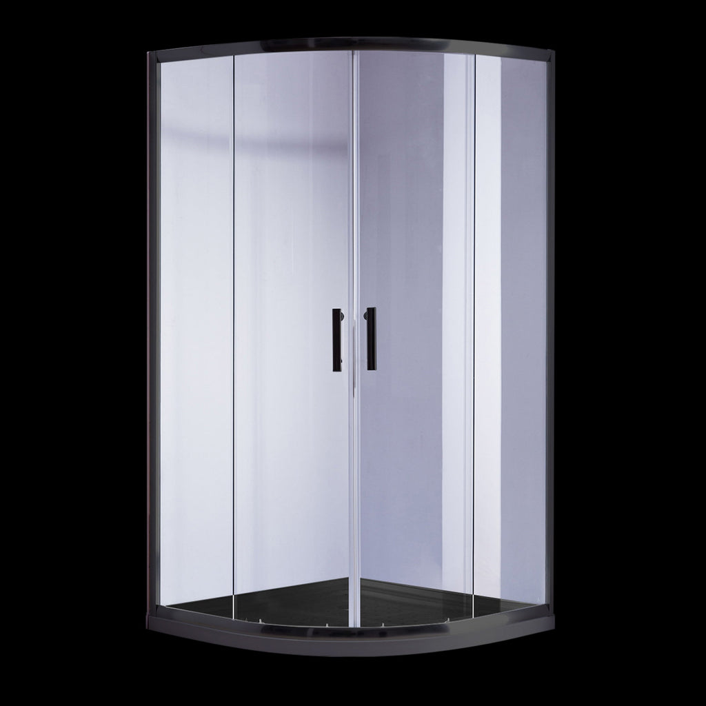 90 X 90Cm Rounded Sliding 6Mm Curved Shower Screen With Base In Black Shower Enclosures