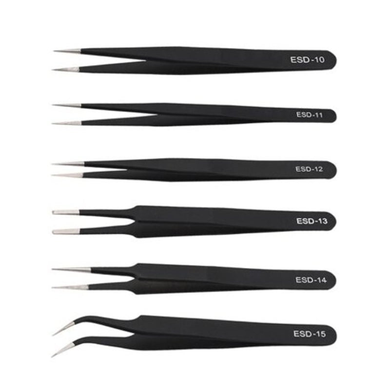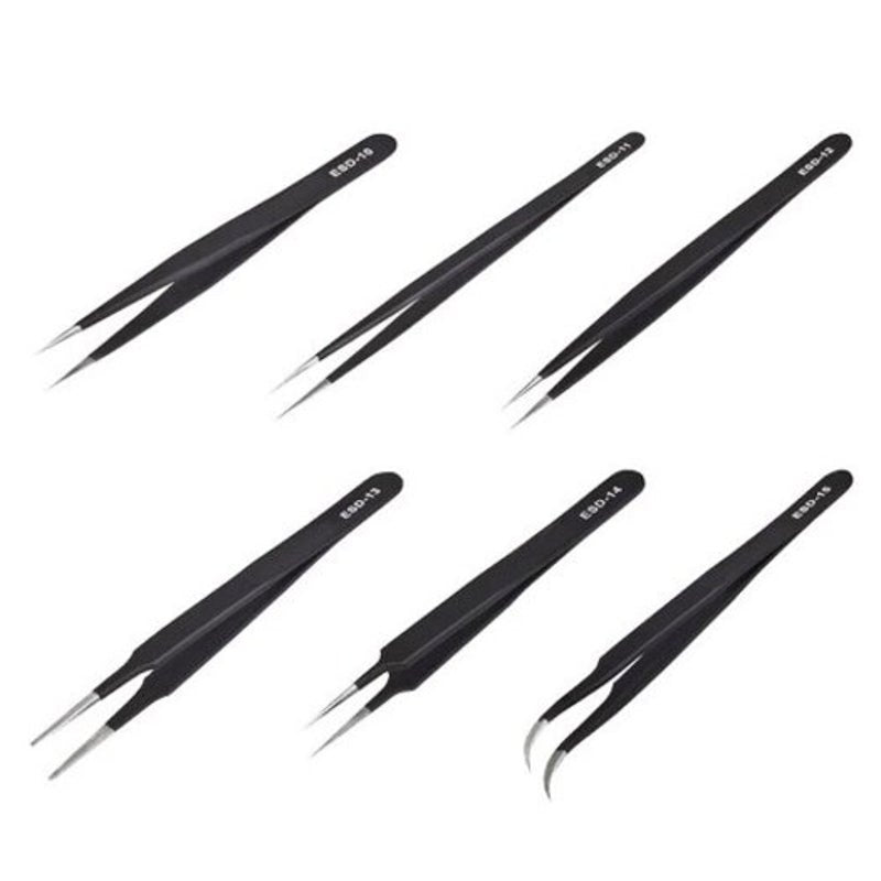 6Pcs Esd Stainless Steel Antistatic Tweezers Electronic Repair Tools Black Electronics Tweezers