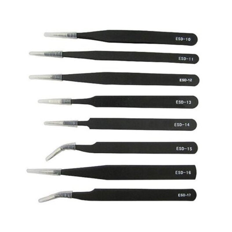 Material]: Stainless SteelSpecification : Length 12.5Cm-14.5 Thickness 1.5Mm 6 Sets Of Esd10-15 Features : Good Strength Non-Magnetic Material Flexible Prolonged Use Of Your Fingers Will Not Fatigue Convenient Safe Flexible Durable .Application : Nail / Mobile Phone Stickers Drilling Modeling And Fixed A Variety Of Small Components Need To Be Bonded.Esd-10: Used To Work With Soldered Integrated Circuit Chips And To Install Or Replace PartsEsd-11: This Tweezers Is Suitable For Precision Electronic Part Operation.Esd-12: The Tweezers Strongly Clamp The Circuit Board Tweezers Will Not Bend The Components Will Not Fall.Esd-13: This Round Shape Avoids Component Damage And Is Suitable For Extracting Wafer Circuit ChipsEsd-14: This Tweezers Sharp Edge Suitable For High-Density Integrated Circuit Chip OperationEsd-15: This Tweezers Is Suitable For Extracting Parts In Stenosis. Esd-16: Wider Than The Handle Suitable For Larger Fingers To UseDiv>SpecificationGeneral Material: Stainless Steel Dimensions And Weight Product Weight: 0.0300 Kg Package Weight: 0.1450 Kg Product Size (L X W X H): 14.50 X 1.50 X 0.15 Cm / 5.71 X 0.59 X 0.06 Inches Package Size (L X W X H): 16.00 X 6.00 X 0.20 Cm / 6.3 X 2.36 X 0.08 Inches You Will Receive You Will Receive: 6 X Tweezer/P