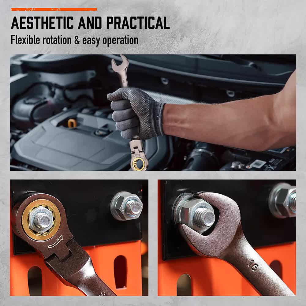 Horusdy 18Pc Flexi Head Ratchet Spanner Set Metric 6 30Mm Spanners Nickle Plated Other Wrenches & Spanners