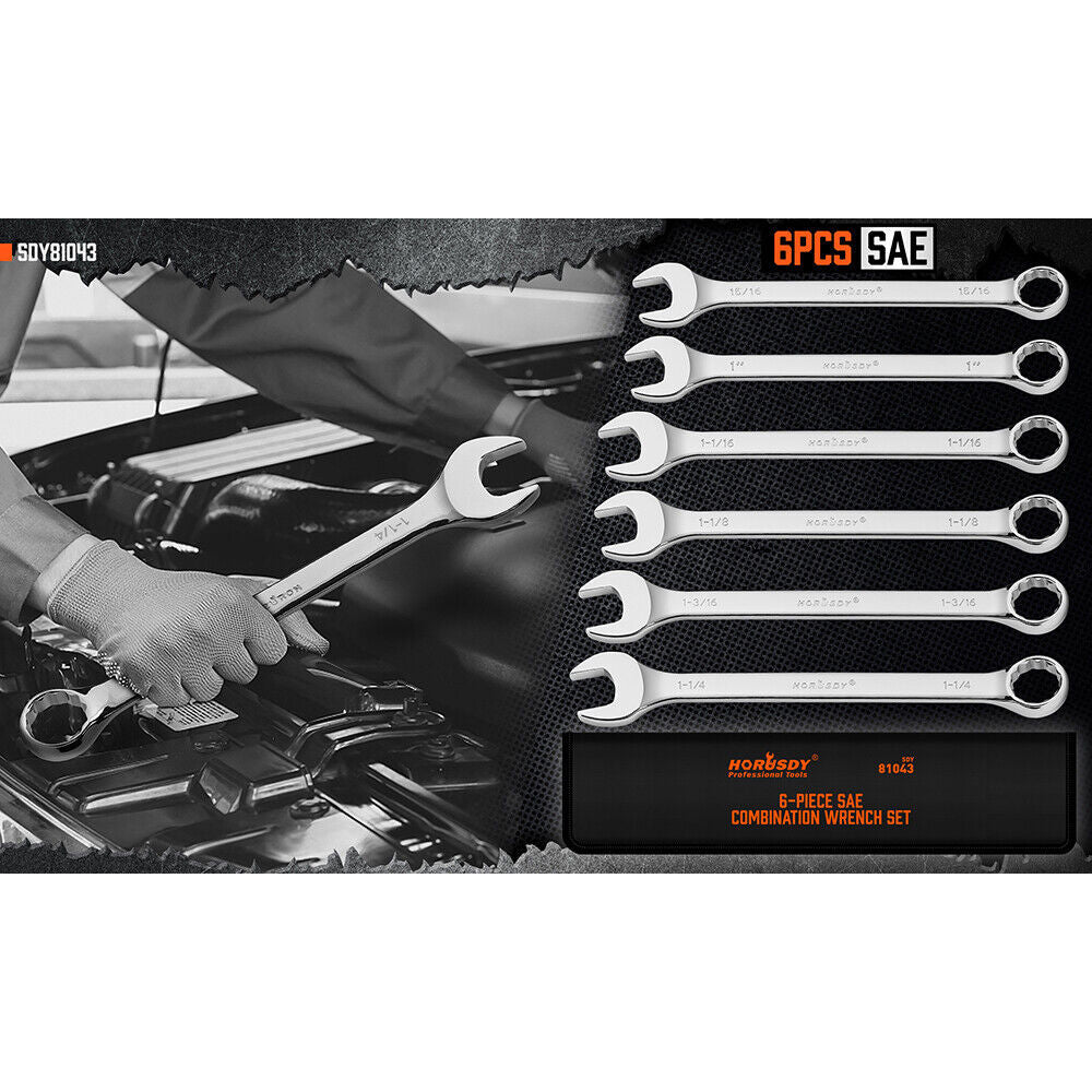 Sedy 6Pc Extra Big Imperial Combination Spanner Ring Open Ended Combo Wrench Work Other Wrenches & Spanners
