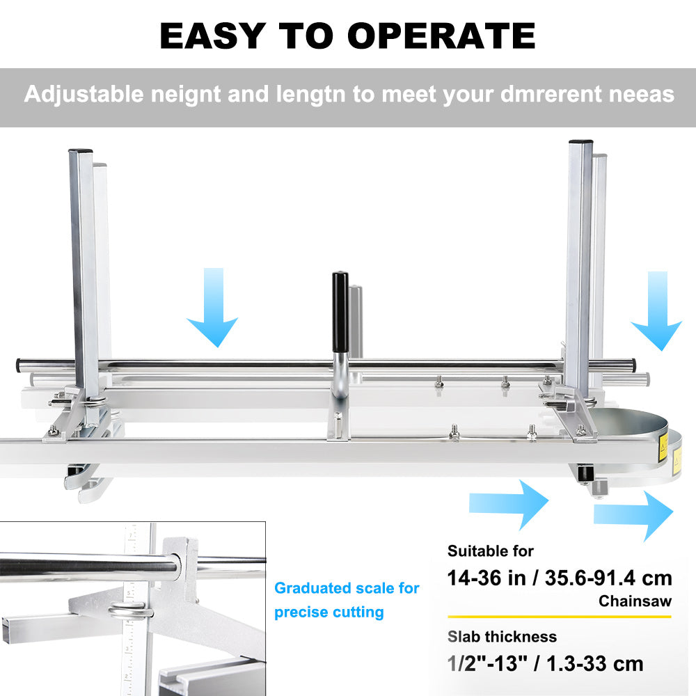 The Height And Length Of Our Saw Mill Are Both To Meet Your Different Needs. It Is Compatible With A 14" -36" chainsaw(Not Included).