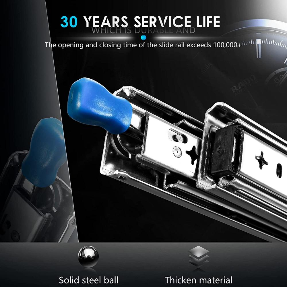 Featuring Lock Design. Locked By The Locking Function.Prevent From Sliding. Easy Control And Secure Fixation. This Slide Rail Opening And Closing Test 100000 Times. The Service Life Is 30 Years.