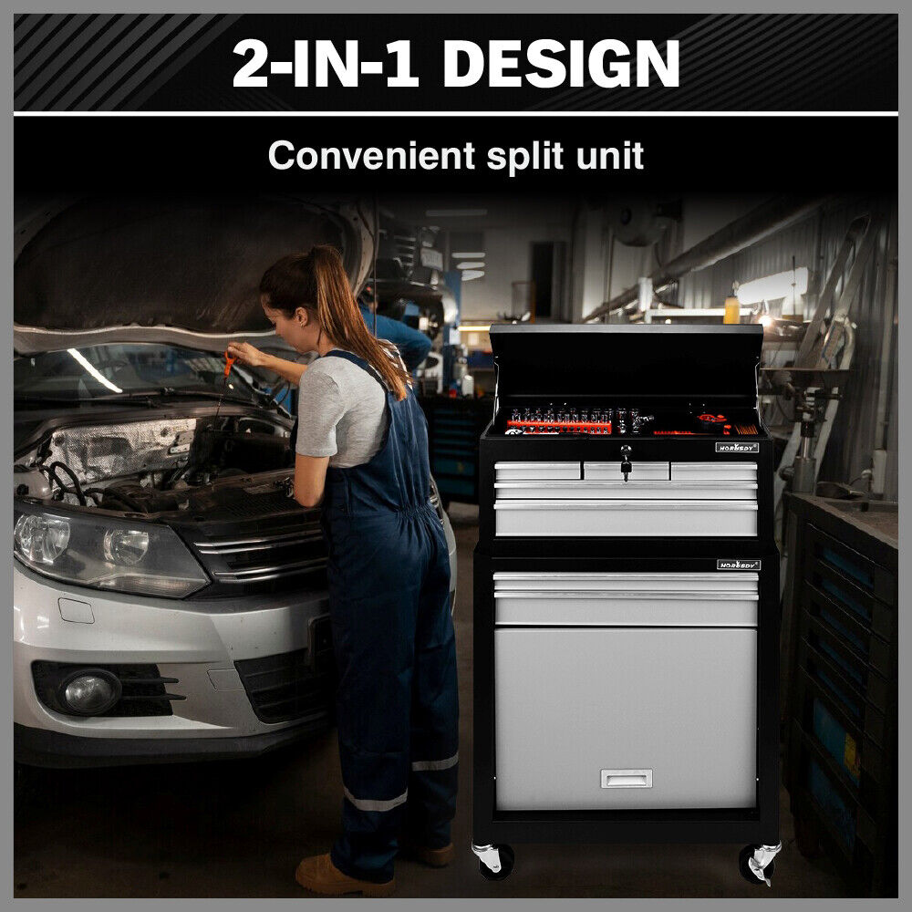 Horusdy 7 Drawer Tool Box Trolley Cabinet Storage Cart Garage Toolbox Organiser Tool Boxes