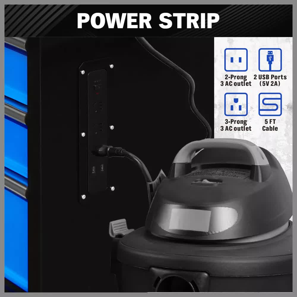 Horusdy 42 Inch 8 Drawer Tool Cabinet 1000 Lbs Wood Top Power Strip Casters Blue Tool Cabinets & Cupboards