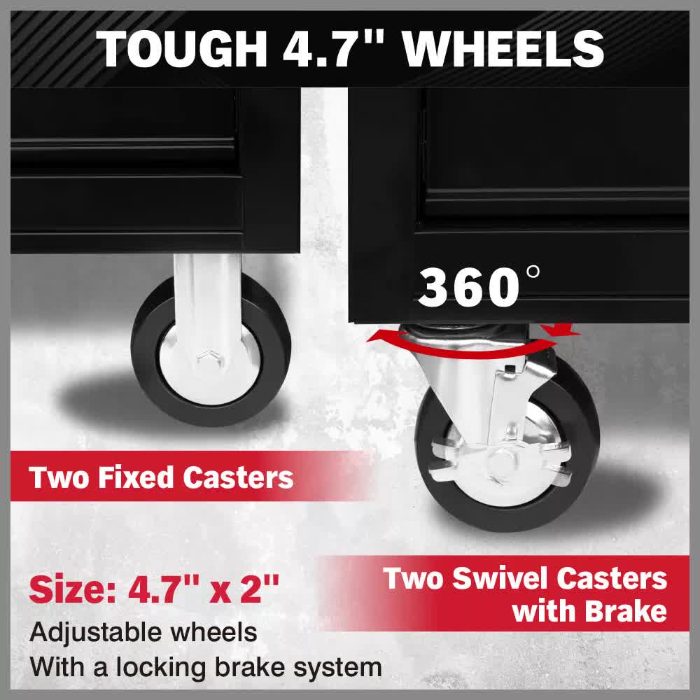 Heavy-Duty Casters: Equipped With 4.7-Inch Wheels Including 2 Fixed Casters And 2 Swivel Casters With Brakes For Easy Mobility And Secure Positioning.