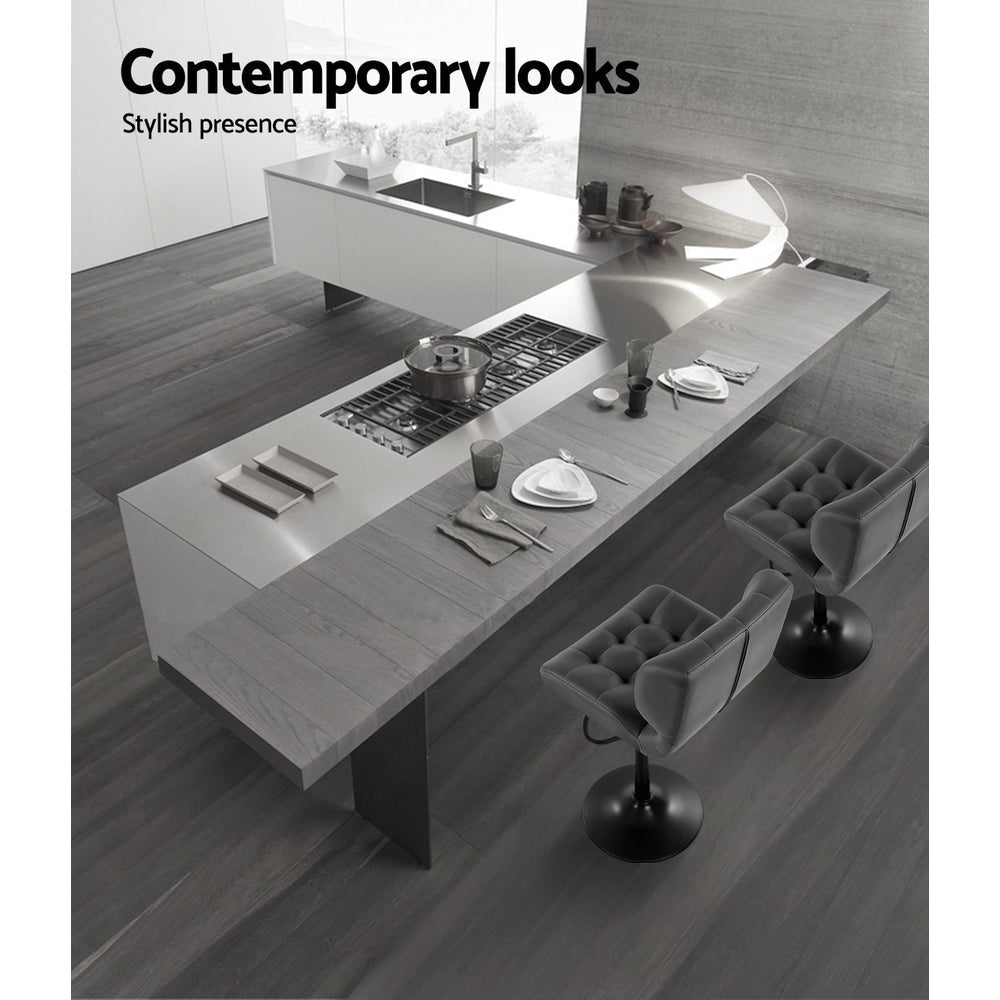 Artiss 2X Bar Stools Gas Lift Leather Padded Grey Benches Bar Stools