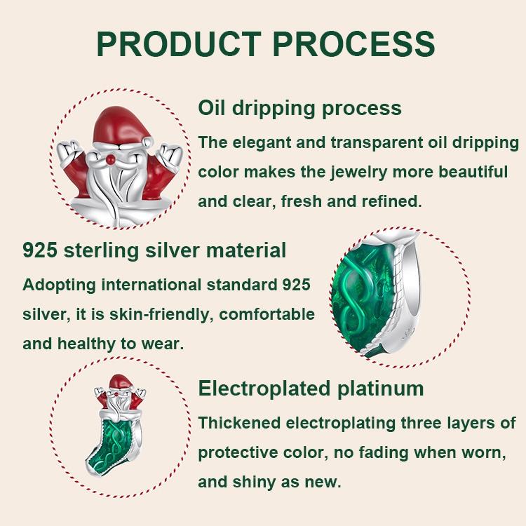 925 Sterling Silver Santa Bracelet Christmas Beads Bracelets