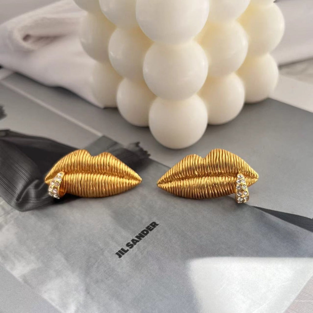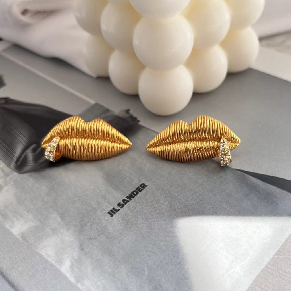 Veile Studios Abstract Mouth Diamond Buckle Copper Fashionable Personalized Earrings