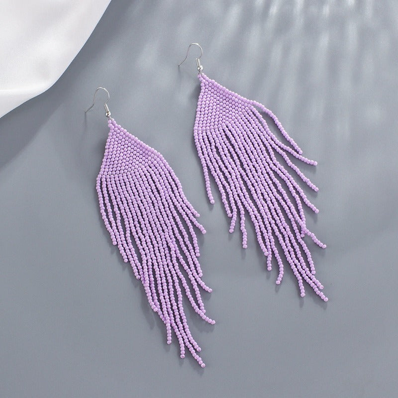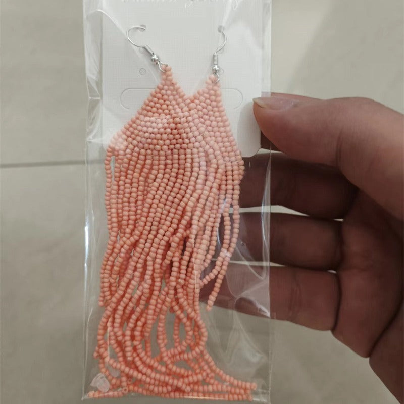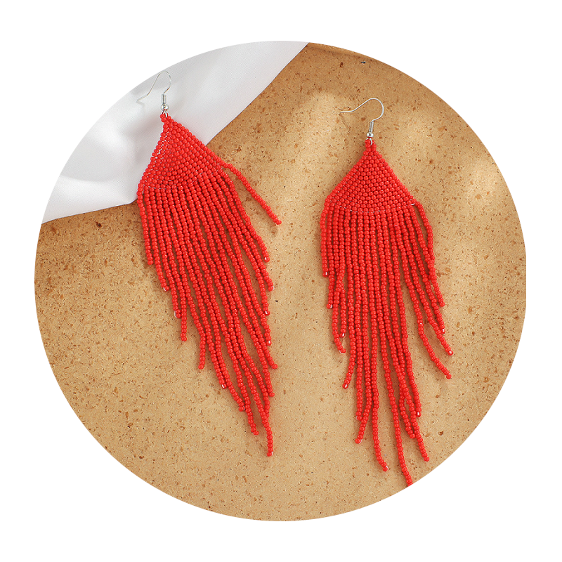 Veile Studios Bohemian Ethnic Colourful Handmade Beads Tassel Boho Beaded Hanging Earrings