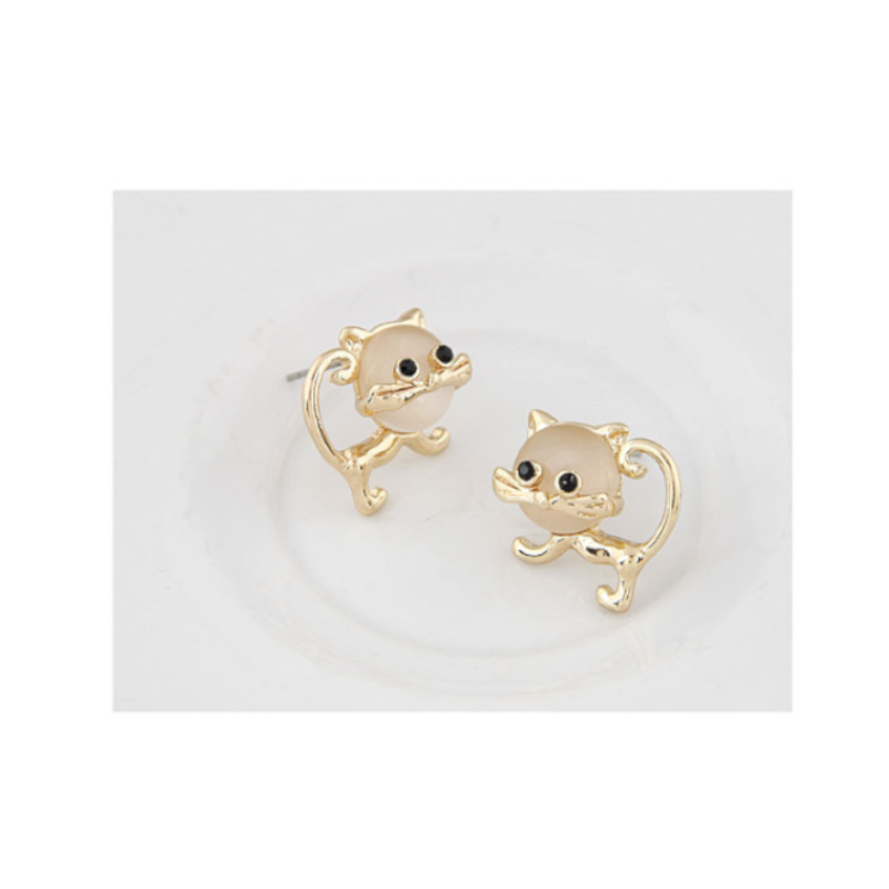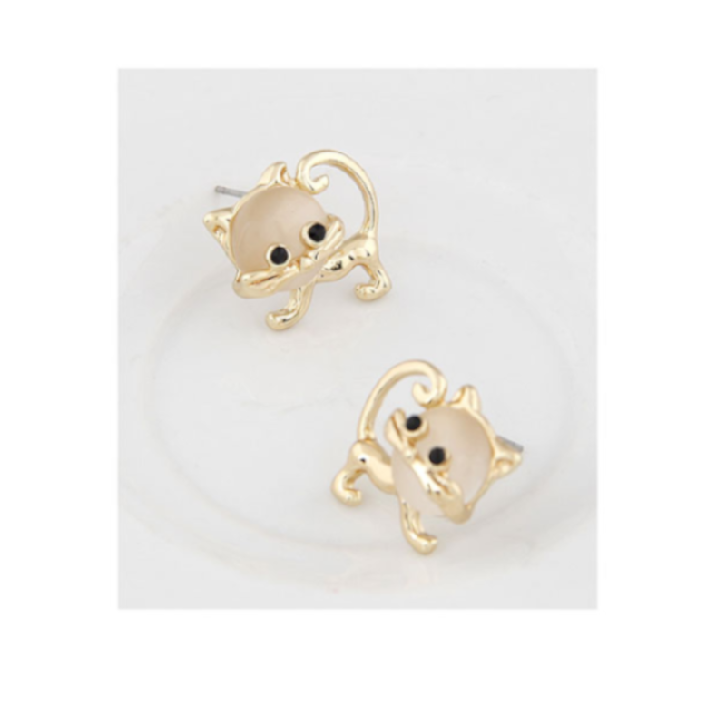 Veile Studios Cute Faux Opal Kitten Tiny Golden Earrings