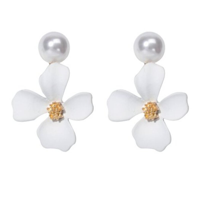 Veile Studios Fashion Pearl White Flower Pendant 1Pair Earrings