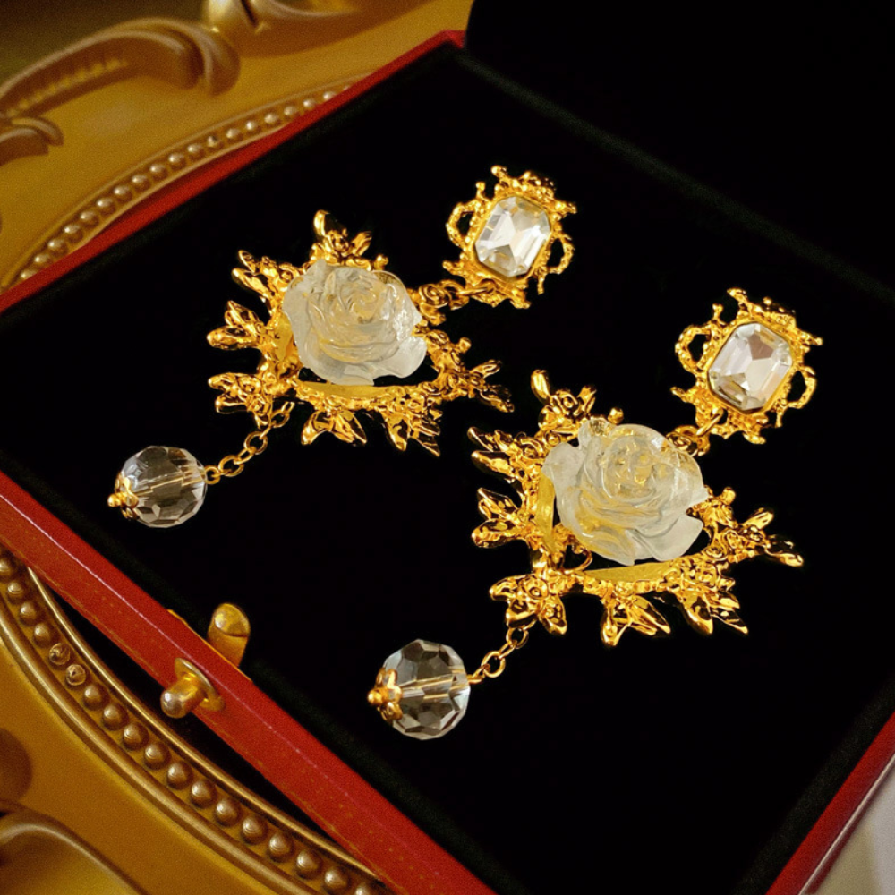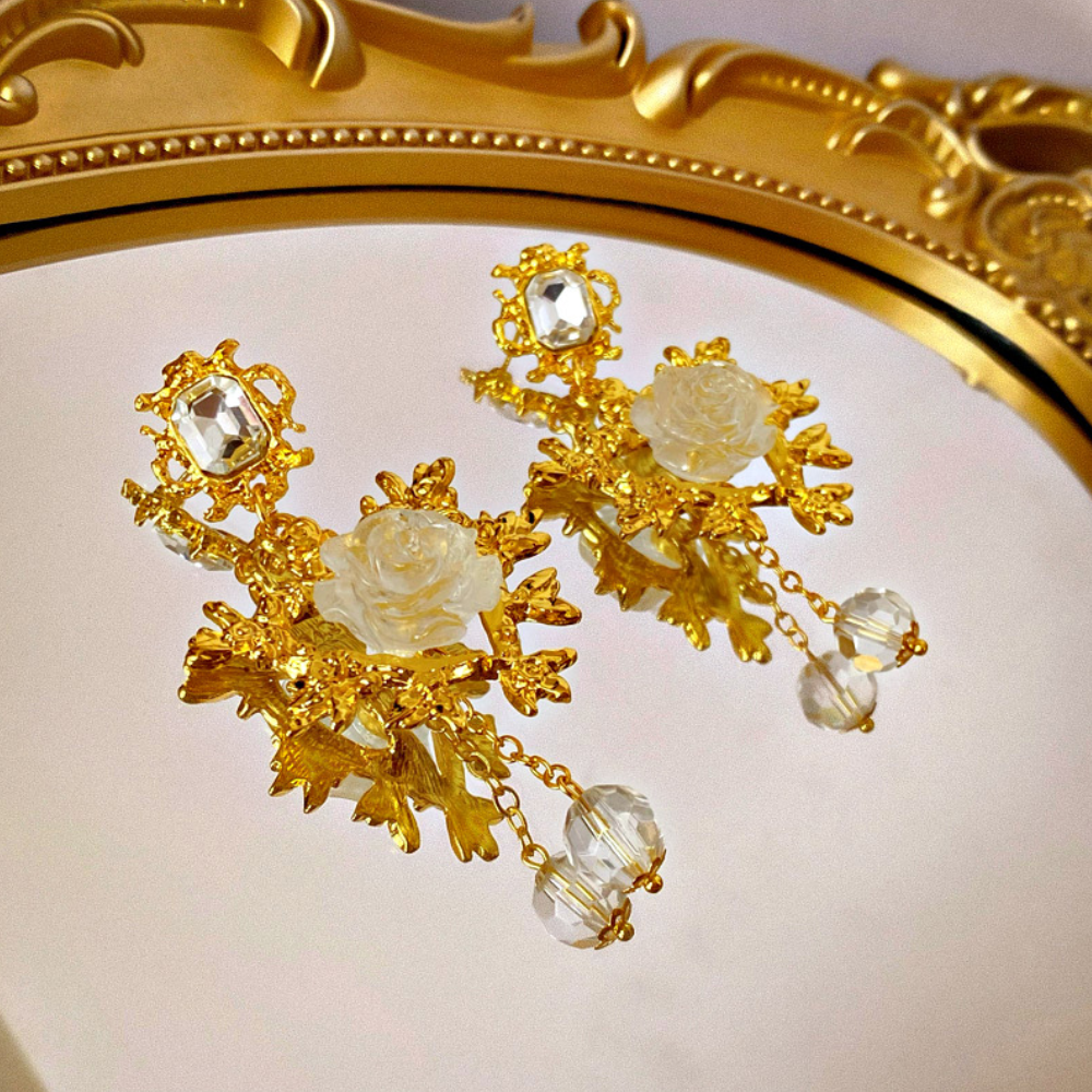 Veile Studios Heart Flower Tassel Palace Style Retro Exaggerated Alloy Earrings