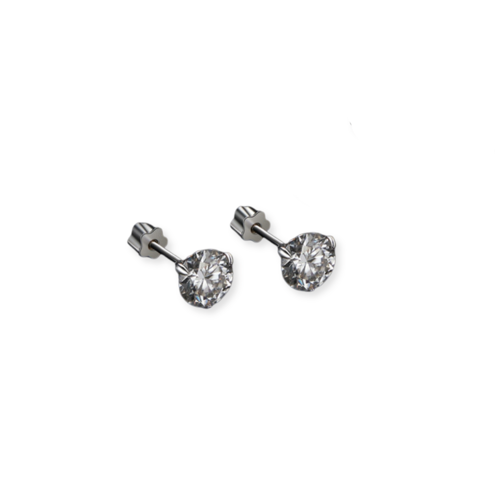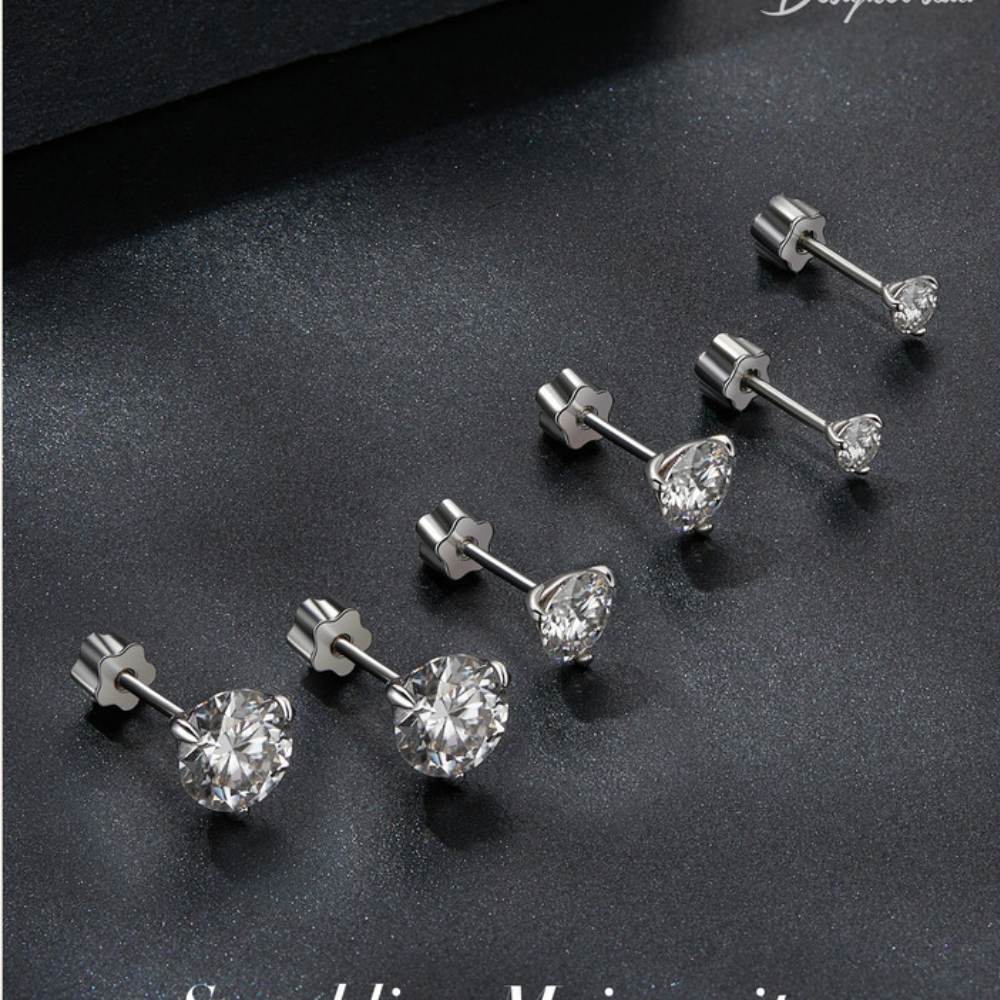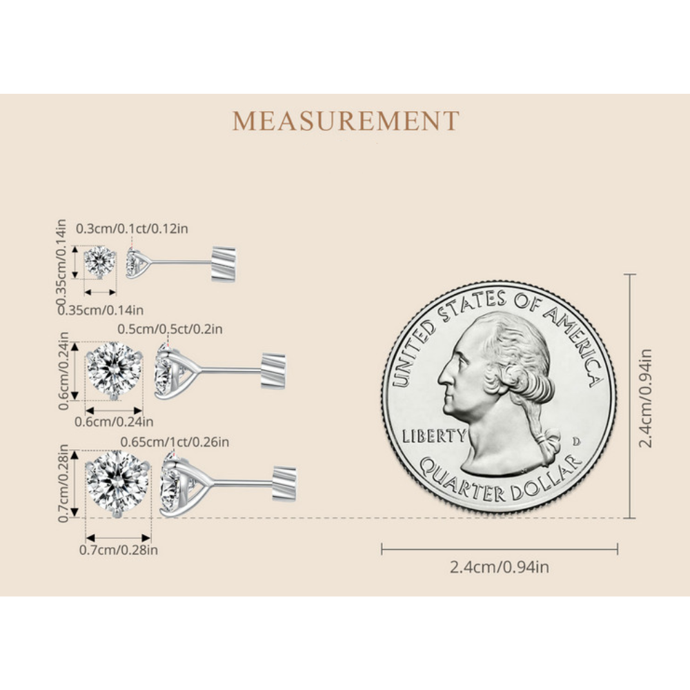 - 1 X Silver Charm Simple Elegant Sparkling Moissanite Earrings Three Claw Design