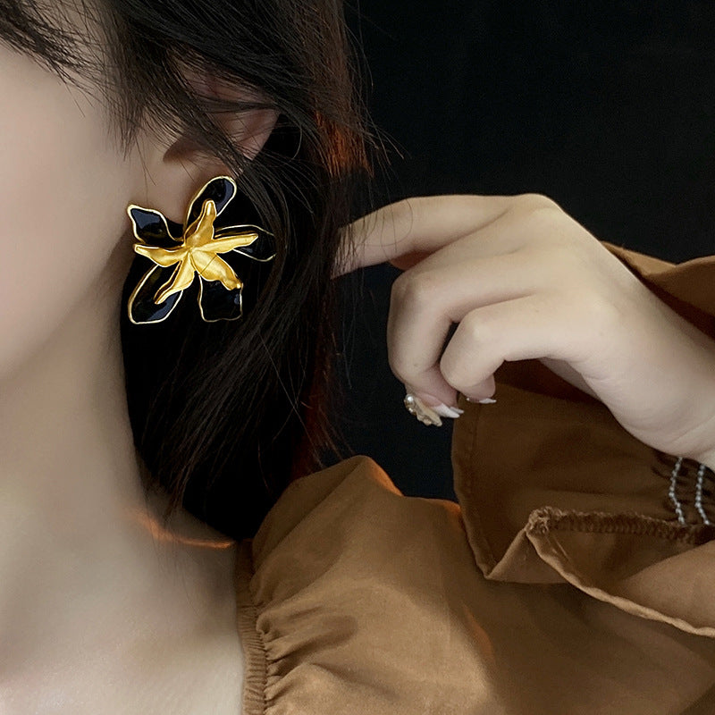 - 1 X Silver Needle Medieval Oil Dropping Double Layered Flower Earrings