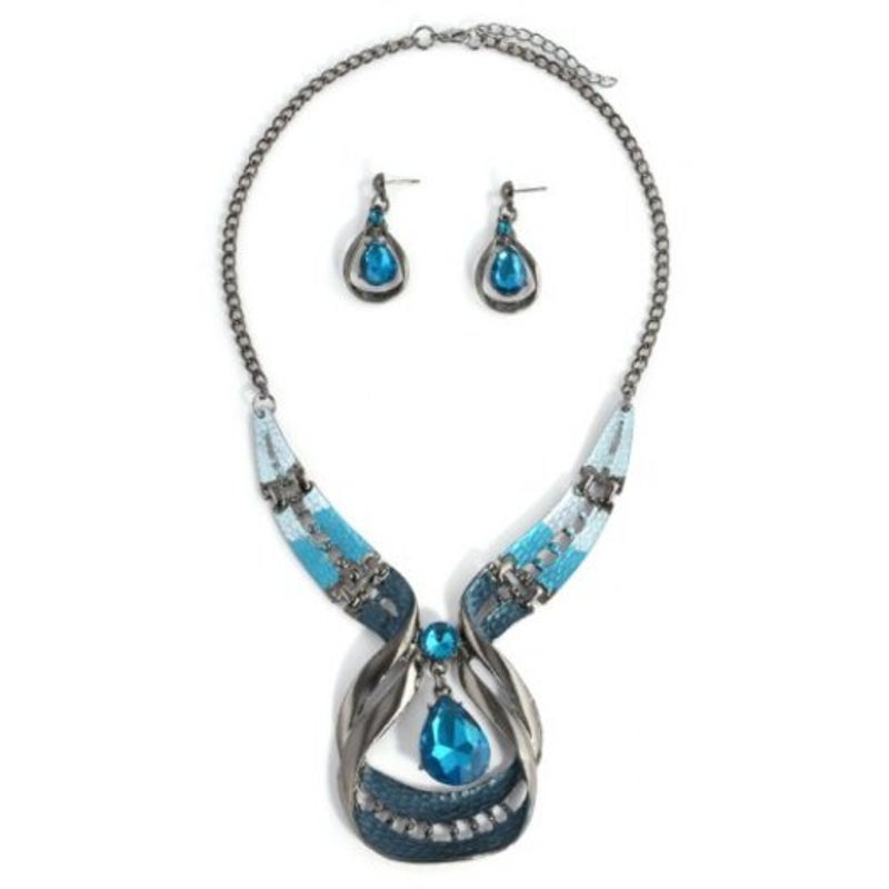 Veile Studios Blue Water Drop Earrings Necklace Set Dodger Jewellery Sets