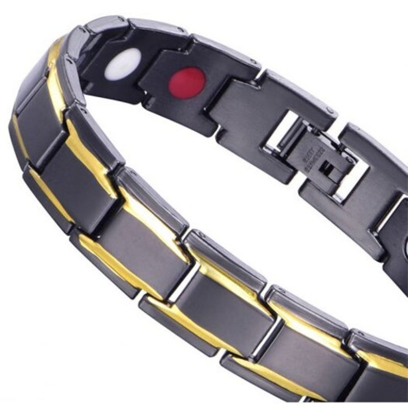 Veile Studios Fashion Charm Gold Plated Copper Men Health Bracelet Black Bracelets