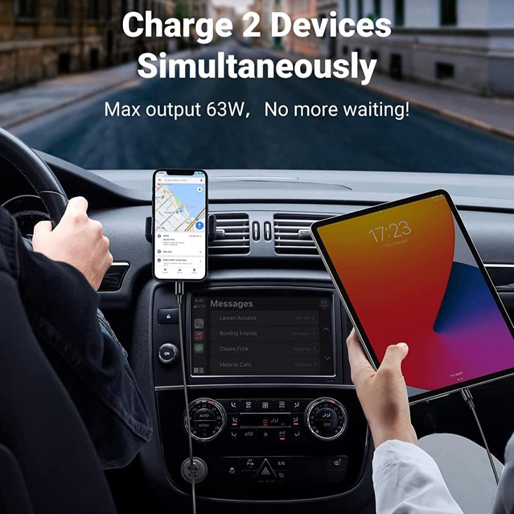 the 63W Type C provides protection from over-current over-voltage over-heating and short-circuiting. Drive and charge with complete reassurance.