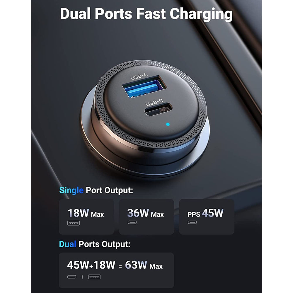 Get 63W total of high charging power with the UGREEN USB C . Charge 2 devices simultaneously with ease! Supports PPS/PD3.0/QC3.0/FCP charging protocols so you harness the power of 3.0 Fast Charging to the 45W port. USB-A provides an extra 18W for extra charging.