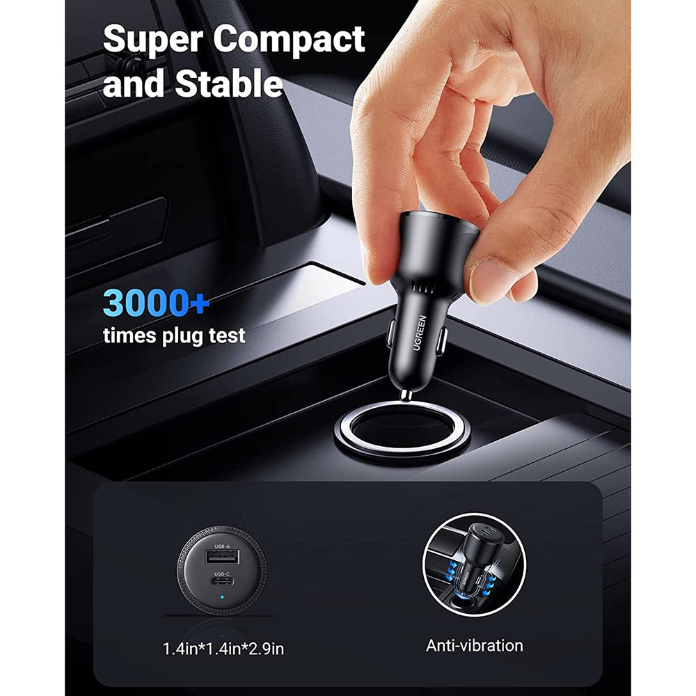 Scratch-resistant high-quality PC material makes the USB C Car Adapter a long-lasting dual-charging partner. The Thermal Hole design accelerates heat dissipation maintaining proper working temperatures during use of this fast charging . Enduring a 3000+ plug/pull test the powerful spring clip keeps this USB adapter firmly positioned in the cigarette lighter outlet. A blue LED light also makes it easy to find in the dark.