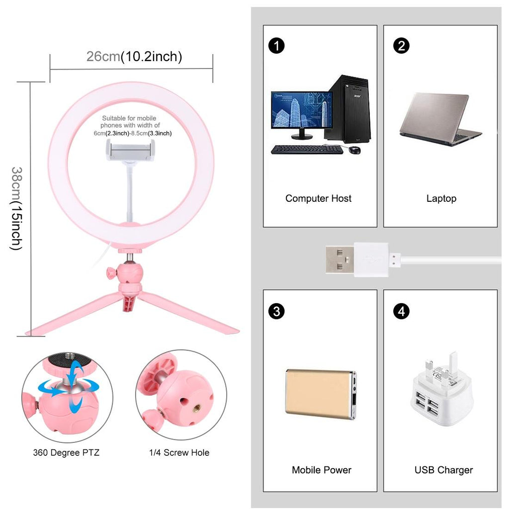 € 1 X 26 Centimetre Selfie Beauty Light Desktop Tripod Mount Usb Three Modes Dimmable Led Ring Vlogging Selfie Photography Video Lights With Cold Shoe Tripod Ball Head Phone Clamp<