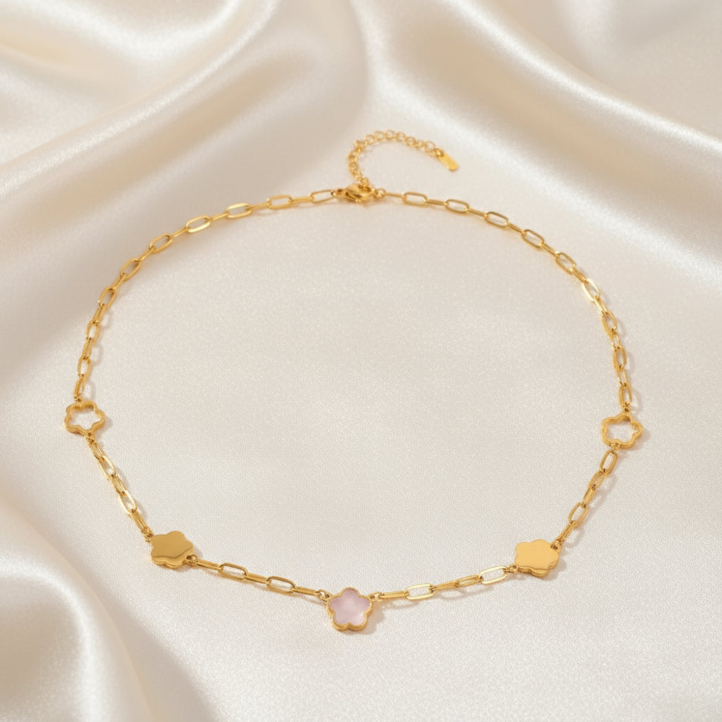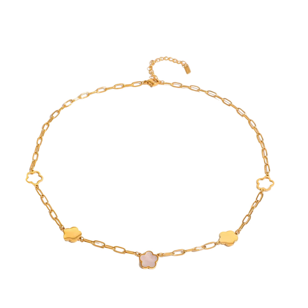 Stainless Steel White Mother-Of-Pearl Flower Necklace