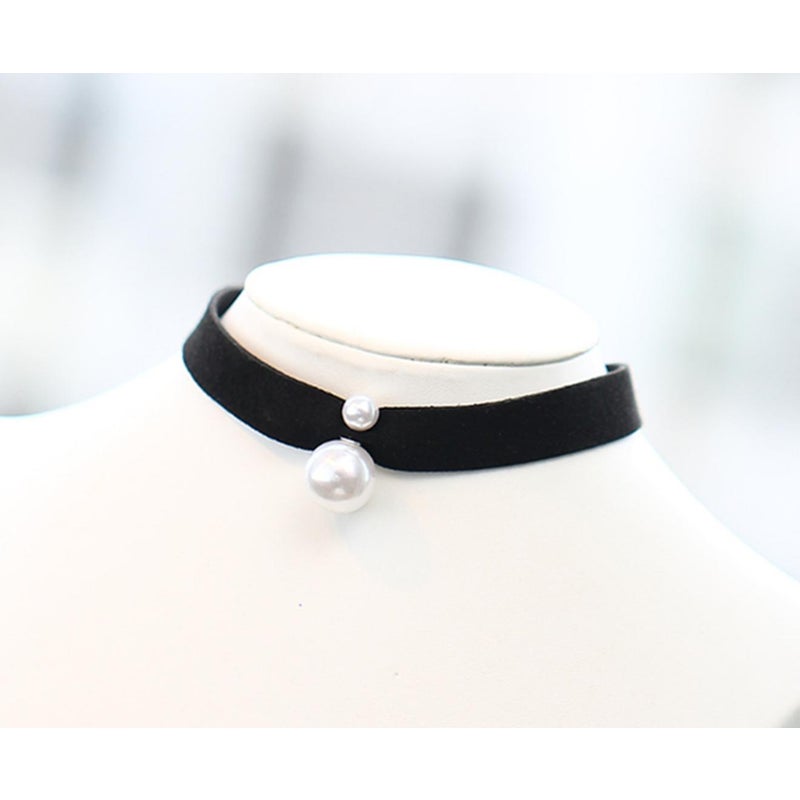 Veile Studios Fashion Faux Leather Black Ribbon Choker With Simulated Pearl Pendant Necklaces & Pendants