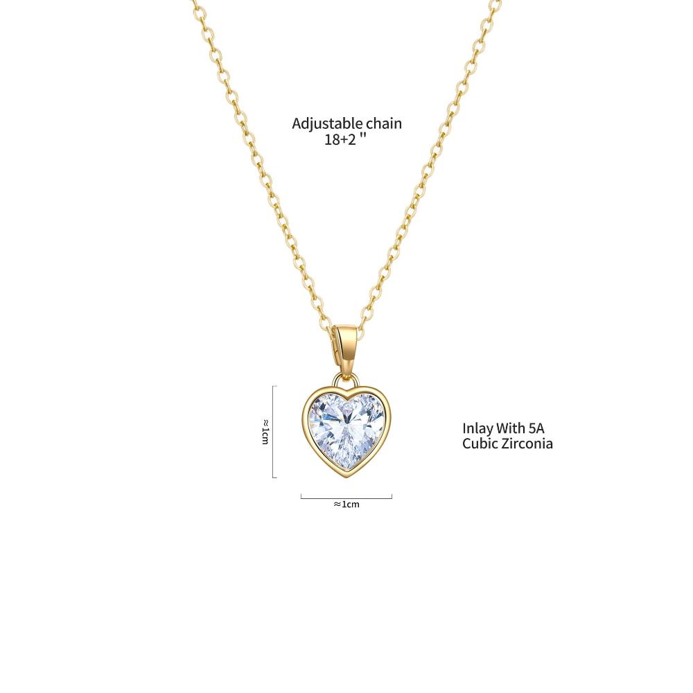 Veile Studios Peach Heart Necklace Copper Plated Zircon Love Pendant Clavicle Chain Necklaces & Pendants