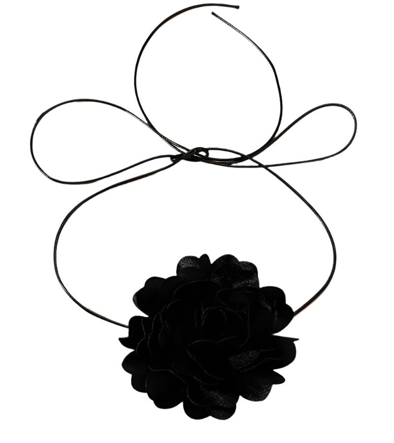 • 1 X retro Black Satin Peony Flower Neck Strap Necklace