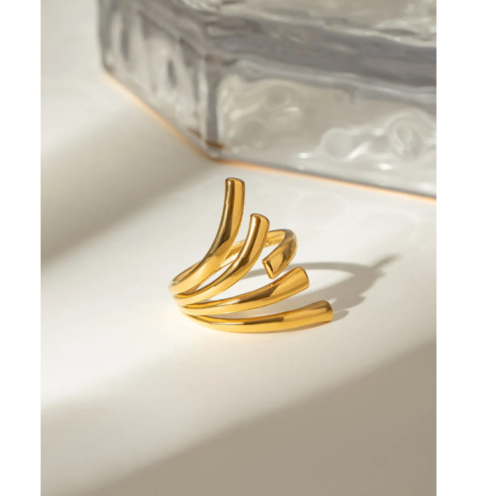Veile Studios 18K Gold Plated Adjustable Open Ring Stainless Steel Casual Jewellery Rings