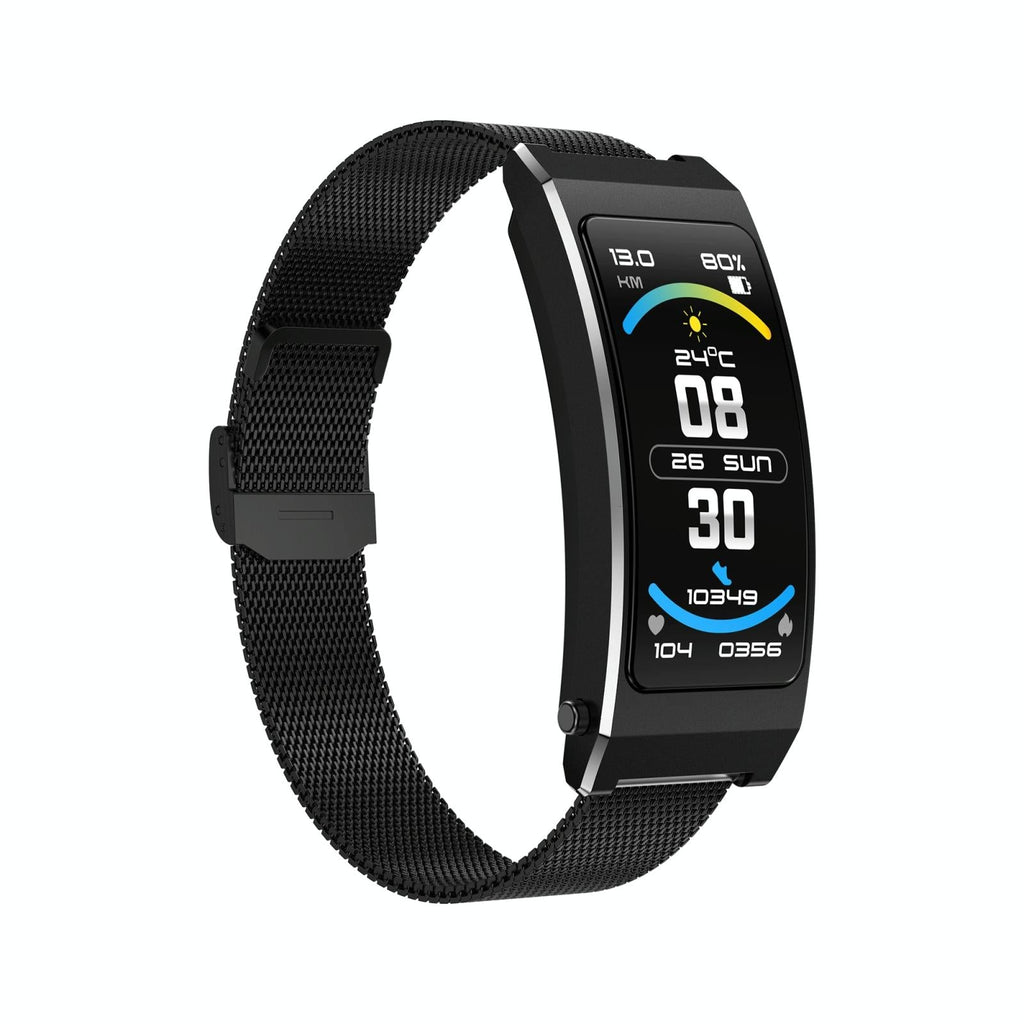 Smart Health Monitoring Bracelet With Bt Call And Leather Strap Black Milanese Steel Smart Watches
