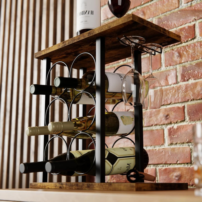 • Space-Saving Two-In-One Storage: Hold Up To Six Wine Bottles And Two Glasses With This Countertop Wine Holder. Its Vertical Design Maximises Storage Space Without Taking Up Valuable Countertop Room Keeping Your Kitchen Or Bar Tidy And Organised.