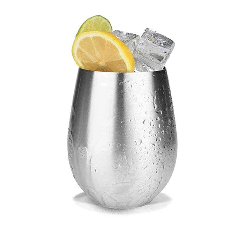Available Designs: Stemless Stemmed Material: 340 Stainless Steel Metal Colour: Silver Stemless Glass Dimensions: 6Cm X 11 Cm Stemmed Glass Dimensions: 7.3Cm X 21.5Cm Stemless Glass Capacity: 500Ml Stemmed Glass Capacity: 520Ml