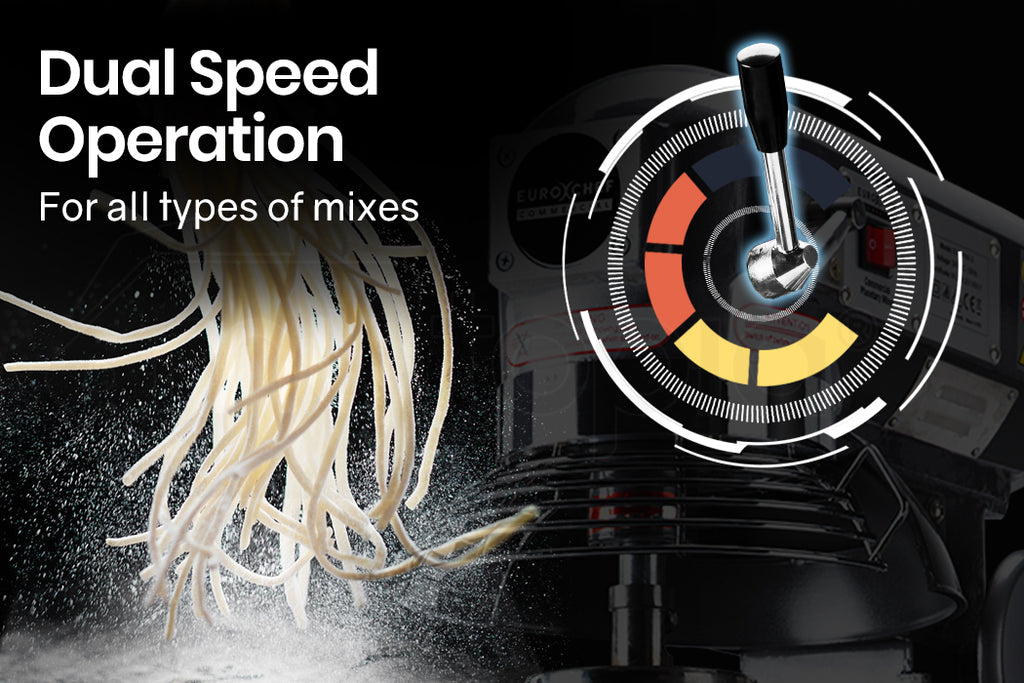 Introducing the 10L Planetary Food Mixer from the EuroChef Commercial range. With a powerful 750W copper wound motor and hardened 2-speed direct drive transmission this model is meticulously designed to deliver high quality mixing results. The benchtop design allows for convenient placement and operation by staff. Efficient output is further assured with its generous 10L bowl capacity that facilitates smooth mixing of everything from doughs icings and sauces to mashing of vegetables.