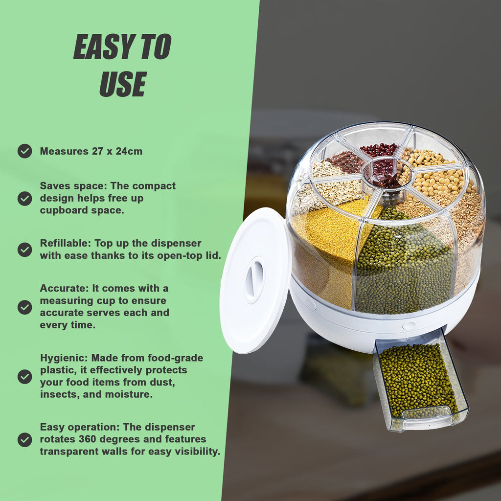 - 1 X 10Kg 6-Section Cereal Dry Food Dispenser