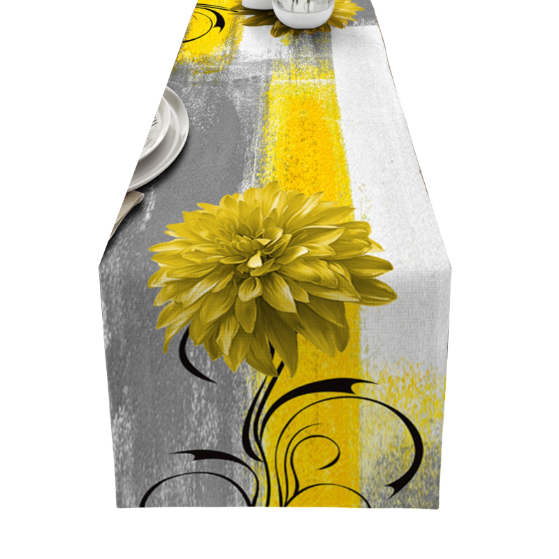 Dahlia Flower Print Table Runner Simple Home Party Dining Decor Tablecloth Table Runners
