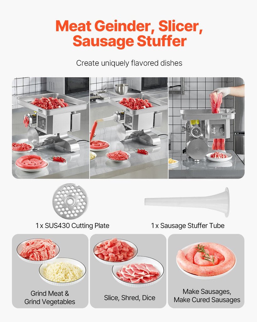 Vevor Commercial Electric Meat Grinder Slicer 4.99 Kg/Min Sausage Stuffer Maker Sausage Stuffers
