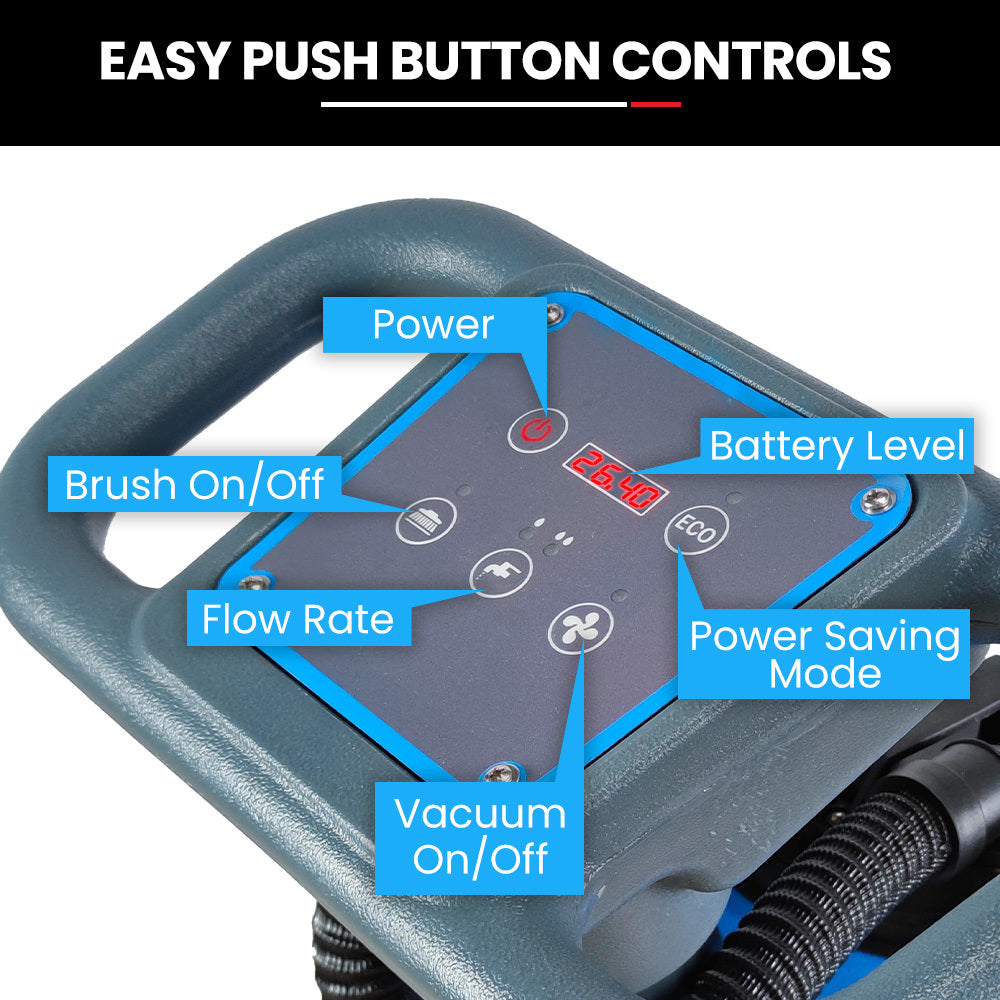 Maintain Extensive Areas Without Interruptions With A 13L Solution Tank And A 15L Recovery Tank Each Equipped With Easy-To-Use Covers For Hassle-Free Maintenance. The Dual-Handle Design With Safety Locks And Accessible Switch Controls Enhances User Comfort And Safety Making It Ideal For Prolonged Use In Commercial Settings.
