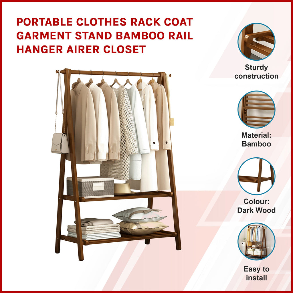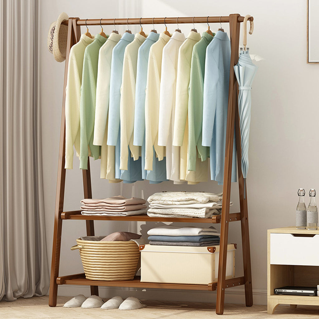 Clothes Rack Coat Garment Stand Bamboo Rail Hanger Airer Closet Garment Racks
