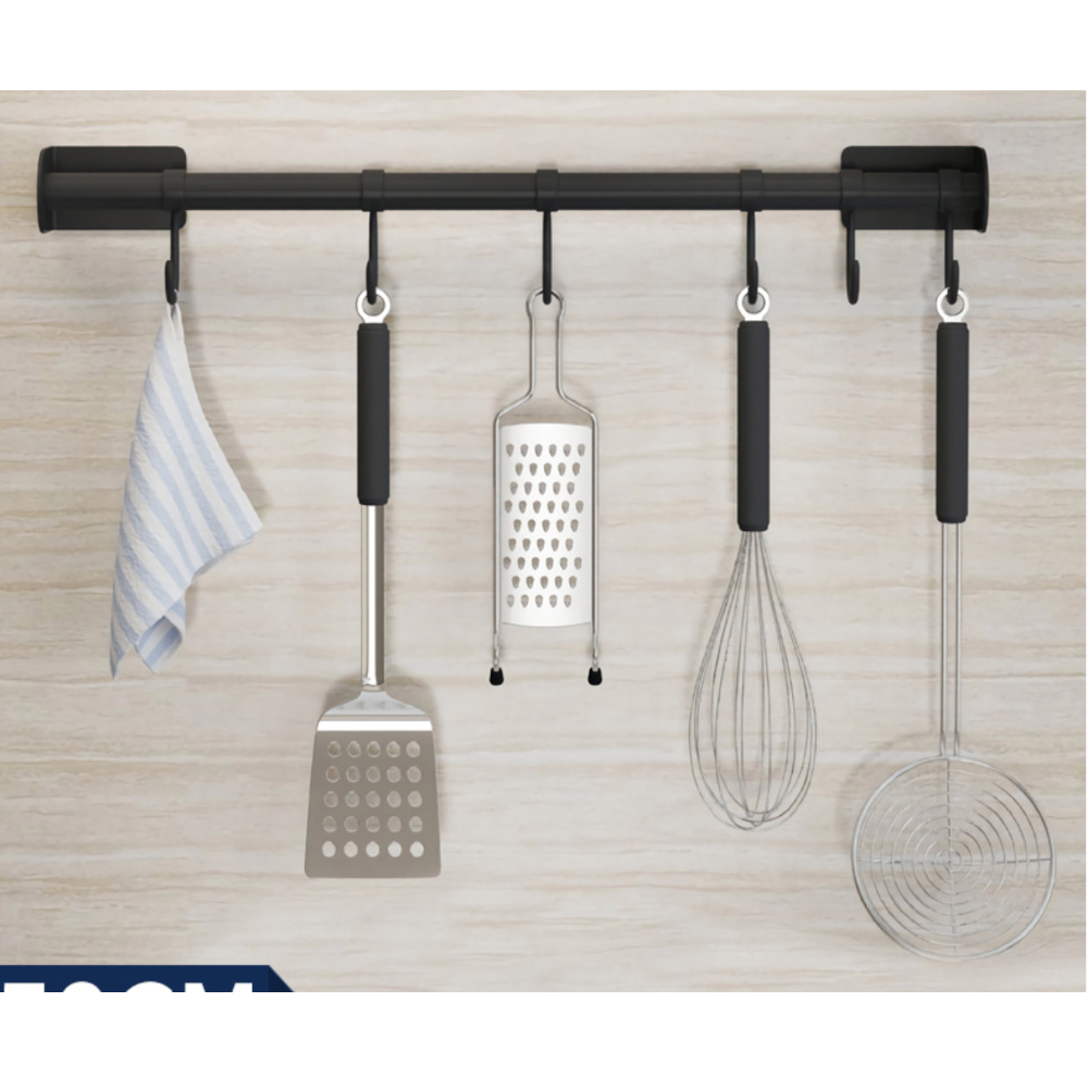 40CM 1 Set of Hooks and Rail (5 hooks + 1 rail + 2 wall brackets + glue screw)