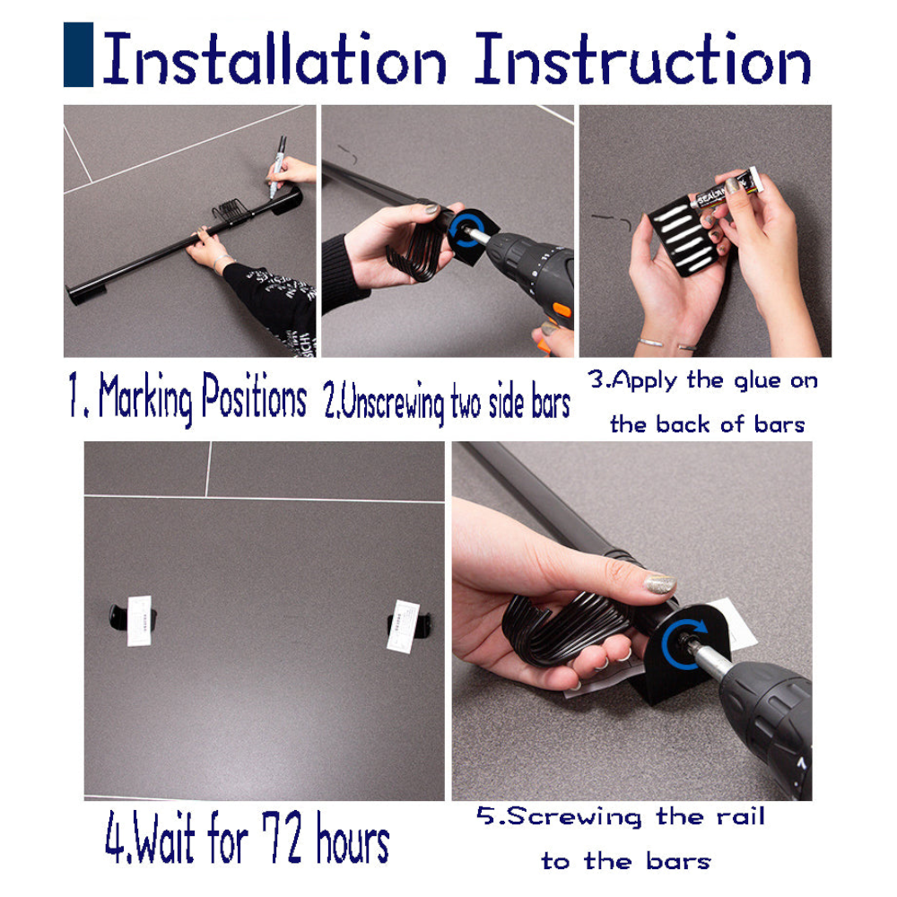 50CM: 1 Set of Hooks and Rail(6 hooks + 1 rail + 2 wall brackets + glue screw)