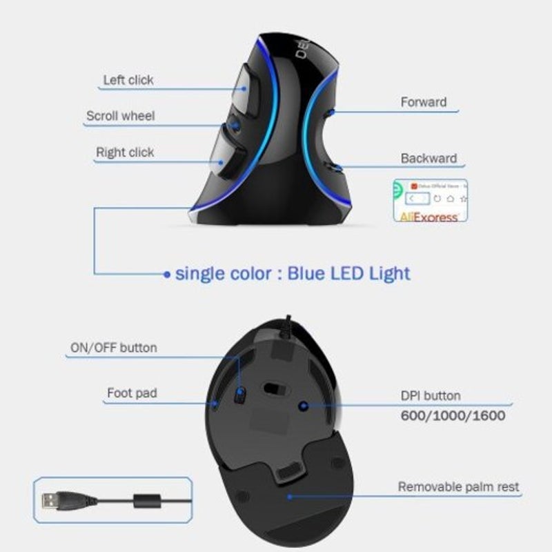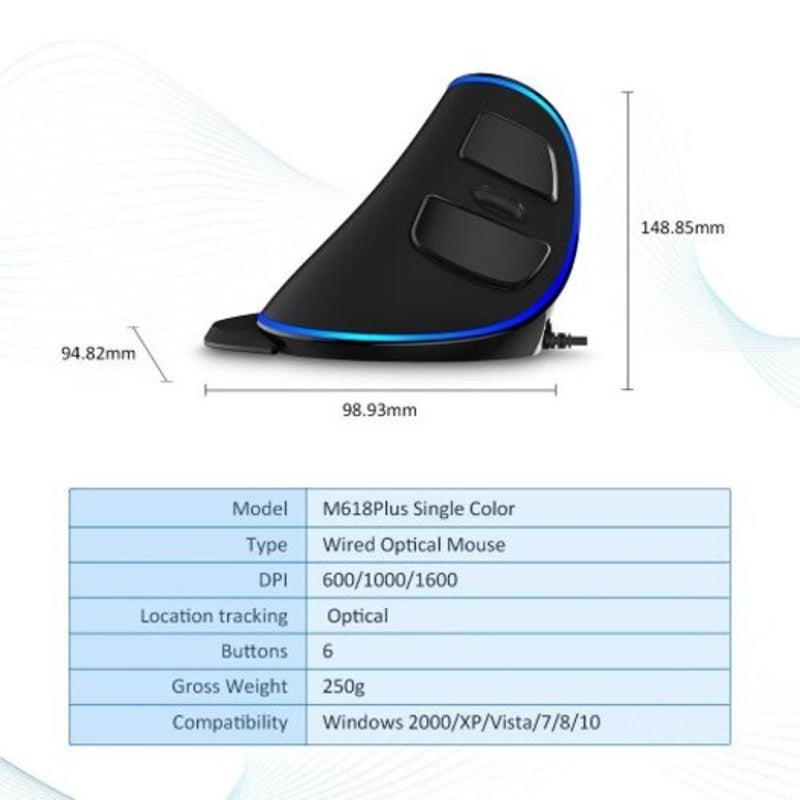 M618 Plus Ergonomic Vertical Wired Mouse Buttons 1600 Dpi Blue Led Light Computer Mice Black Mice Trackballs & Touchpads