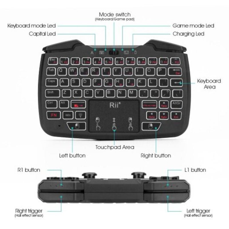 Rii Rk707 Mini Wireless Game Controller Mouse Keyboard Combo Black Keyboard & Mouse Bundles